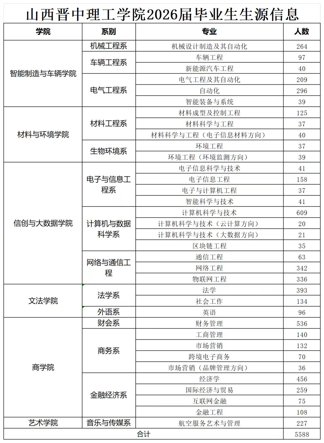 我校2026届毕业生共5588人,详情如下: